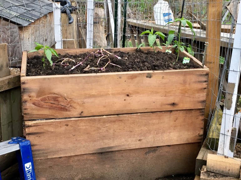 Here is DYI for your garden ideas. We found some pretty old drawers. It looked like it could be recycled into something else. What a better way than to use it as a garden box. With a half yard of soil from the near by garden center, filled the drawers shell and planted some tomatoes.