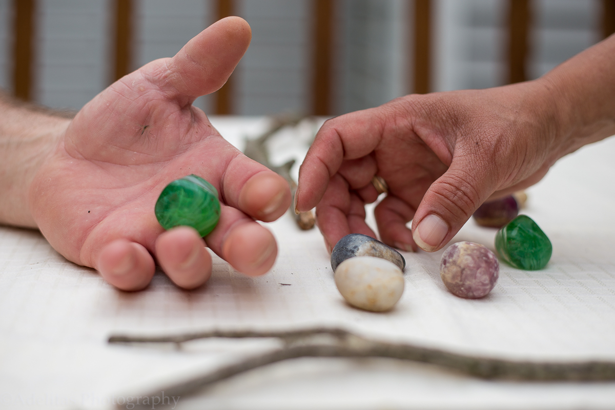 wood, stones and beadsHandsTree branchGarbera African Daisy