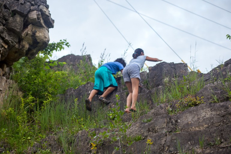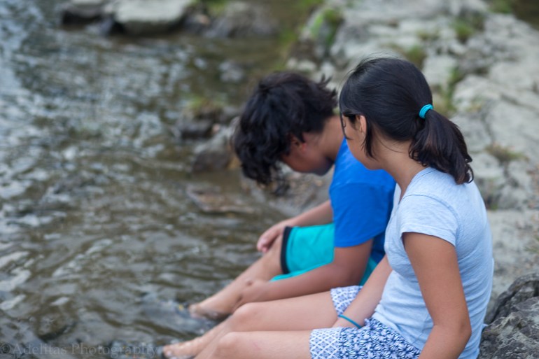 Today, it was quite cloudy, which painted everything in a much more muted setting. This allowed for some really interesting shots. Here, I had my husband and son help me play around with some sticks and stones. The focus here was to really get close enough to see the different textures on all three objects. It felt like a ‘happy accident’, but my son managed to take an interesting shot of my hand near my husband’s. He called it a ‘pretty parallel’.